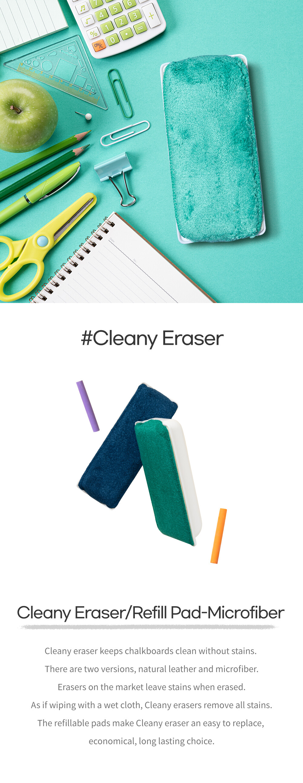 CLEANY eraser keeps chalkboards clean without stains:)